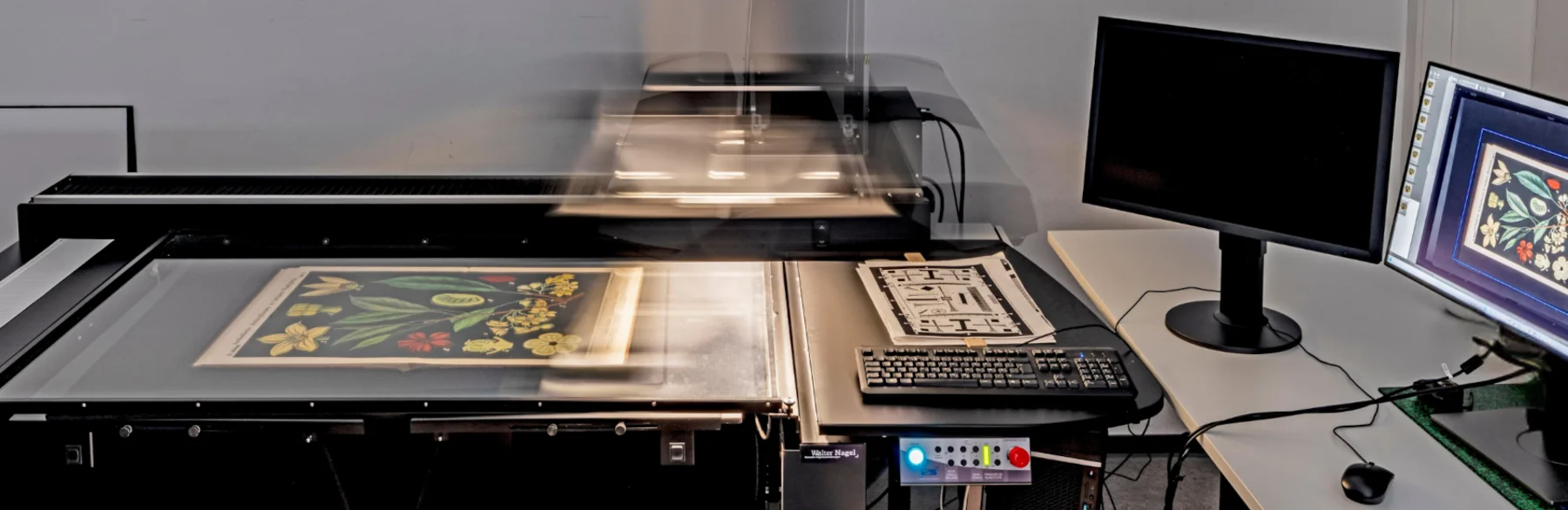- Für das Scannen moderner Bücher aus der Präsenzbibliothek sind im Lesesaal zwei Buchscanner vorhanden. Diese Geräte dürfen nicht für Archivalien, Handschriften und Drucke vor 1850 genutzt werden.